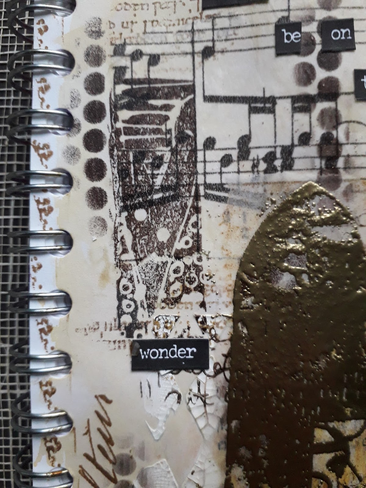 Gorgeous page! The smudged ink background and crackle paste through the stencil looks amazing 😁. Thinking of you and wishing you well! J 😊