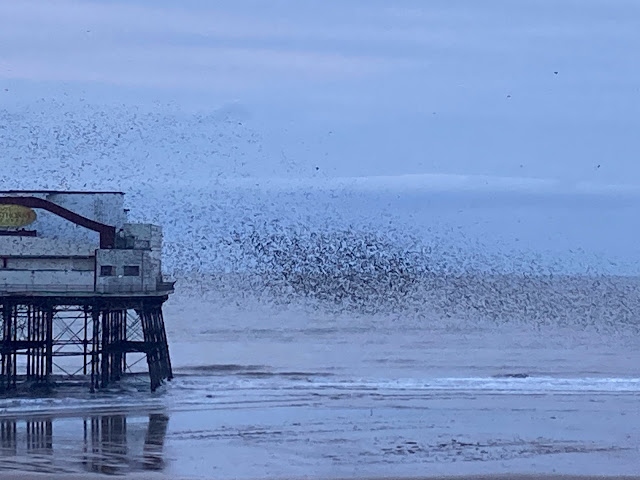 Hubby and I had seen a news item about the number of starlings roosting on Blackpool Pier so after saying our goodbyes and planning to meet up again at Bluebell time we set off for the short drive to Blackpool